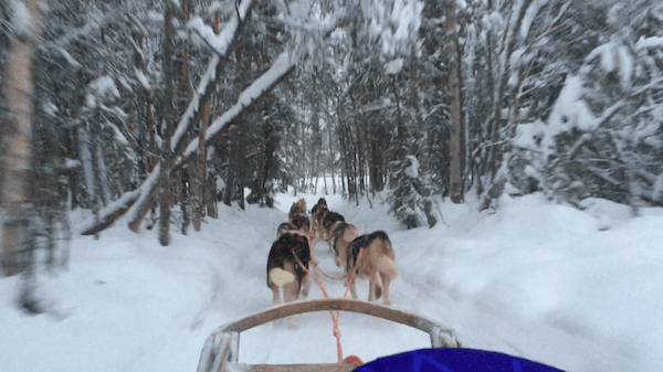哈士奇雪橇是个大约2km路程, 由牧场主人代领哈士奇绕着湖, 然后穿过树林一圈回到哈士奇牧场. 据牧场主人说, 他们其实不需要指导哈士奇怎么走, 哈士奇会自己寻找道路, 而且哈士奇能嗅出冰的厚度, 确保雪橇不会掉入湖中.