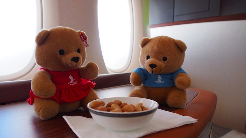 回程的时候飞机换回了A380-800, 当天刚好是情人节, 漂亮的空姐送了偶两只可爱的小熊.