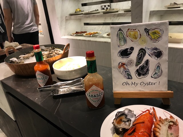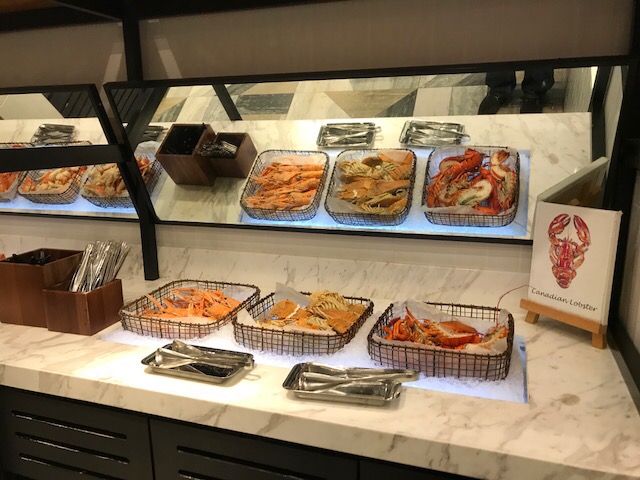 Conrad的龙虾, 辣椒螃蟹, 生鱼片几乎都是秒杀的, 加菜的速度也慢, JW Marriott的龙虾超肥超新鲜, 几乎每一只都有满满的蛋, 而且一整篮满满的龙虾任选任吃, 生鱼片也有厨师现场服务, 而且是现点现做.