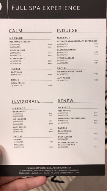 OK… 感觉好像离题离过了头😅… 话说在JW Marriott享用Sunday Brunch的时候, 那里刚好有个Spa by JW的柜台, 那里有两位masseur在帮顾客做免费的手部按摩, 于是就贪新鲜的尝试了一下, 过程中她们有提到JW Marriott现在有个Spa的促销package, 值得参考一下, 原本是不以为意的, 不过就心想看看一下也无妨, 拿出手机查了一下, 不查还好, 一查之下就被他们的价格给吸引到了😍…