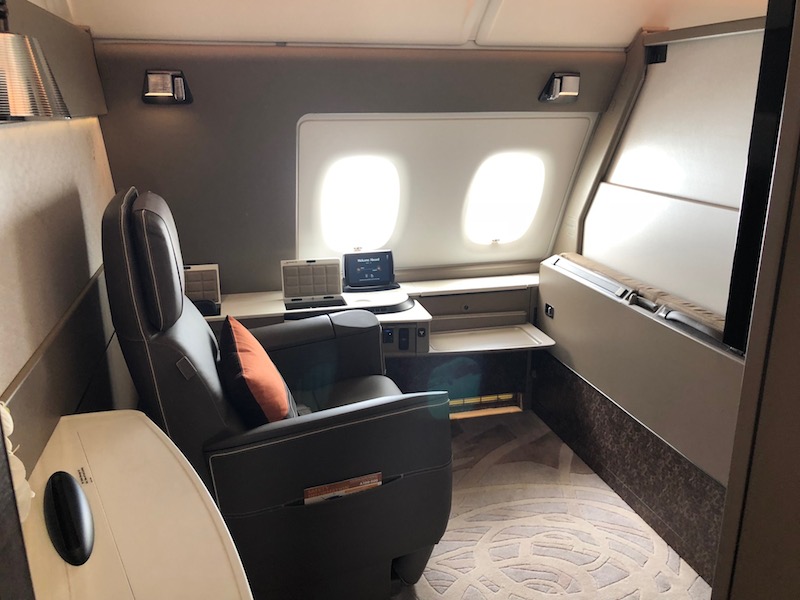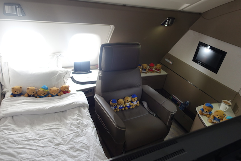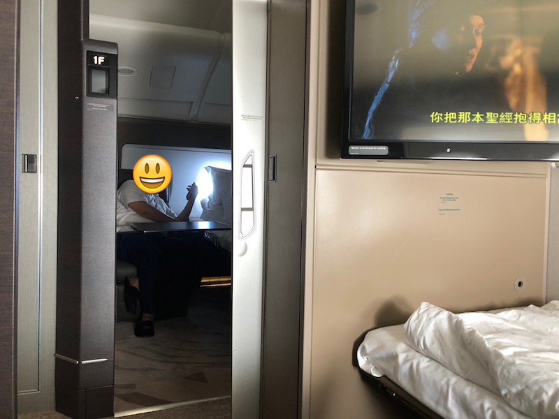 一上飞机LSS Miss Pan马上带我去我的座位1A, 然后为我详细的介绍全新Suites的功能, 饭后无聊到处去打扰机组人员的时候才知道其实他们大部分都是第一次服务这款全新的A380, 所以其实很多机上的新功能他们也在学习当中. 不过要说的是这次的Suites设计上出现很多瑕疵, 迟点会一一讲解.