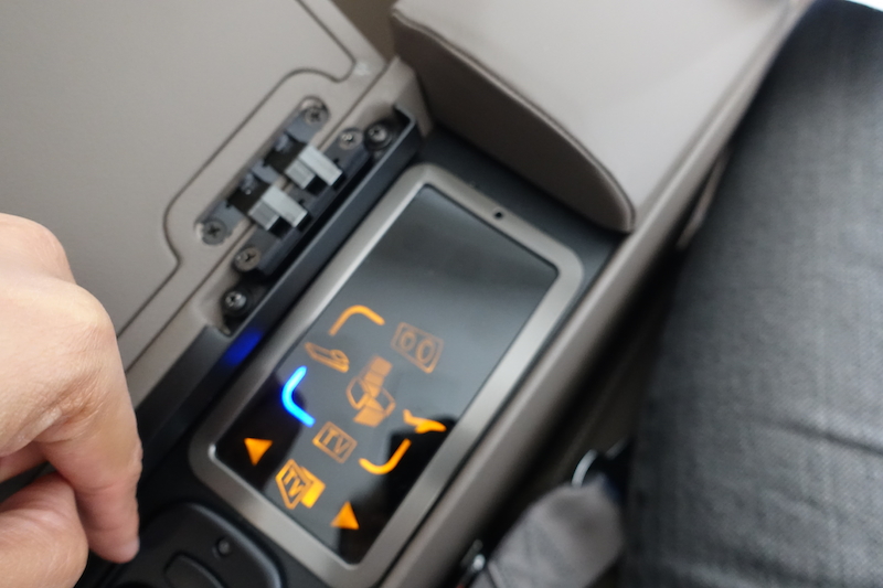 由于飞机起飞前, 1A/F的座位必须调正, 所以会有一个小屏幕看Safety Instruction Video, 其他2, 3排的座位则没有这个小荧幕.
